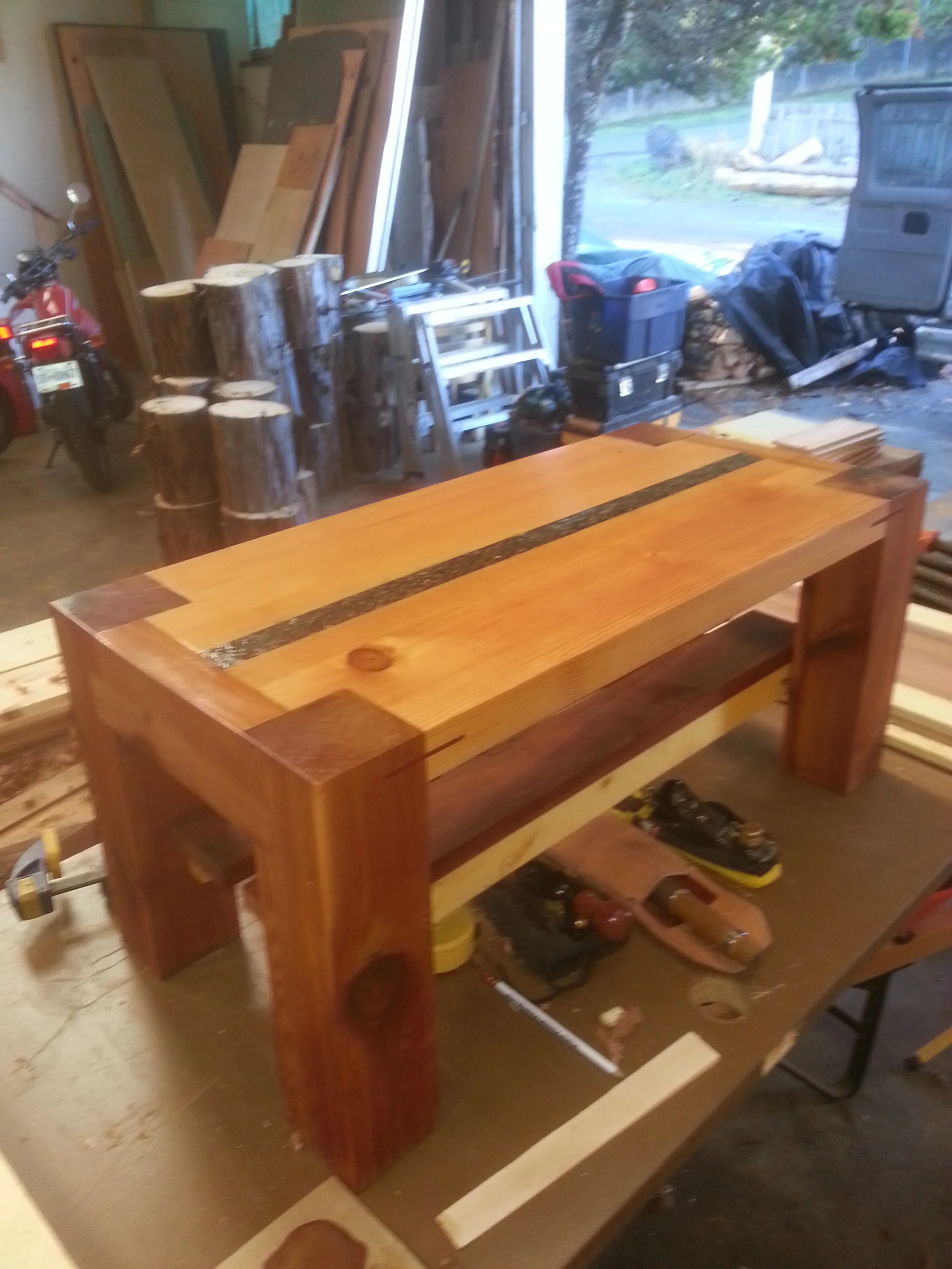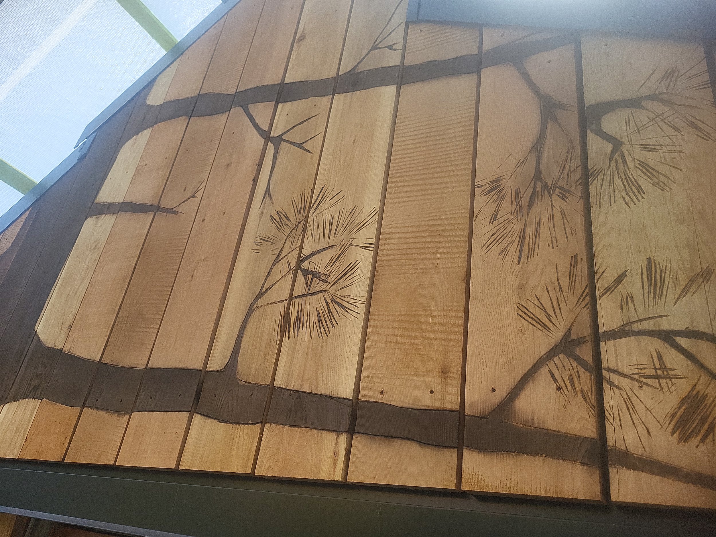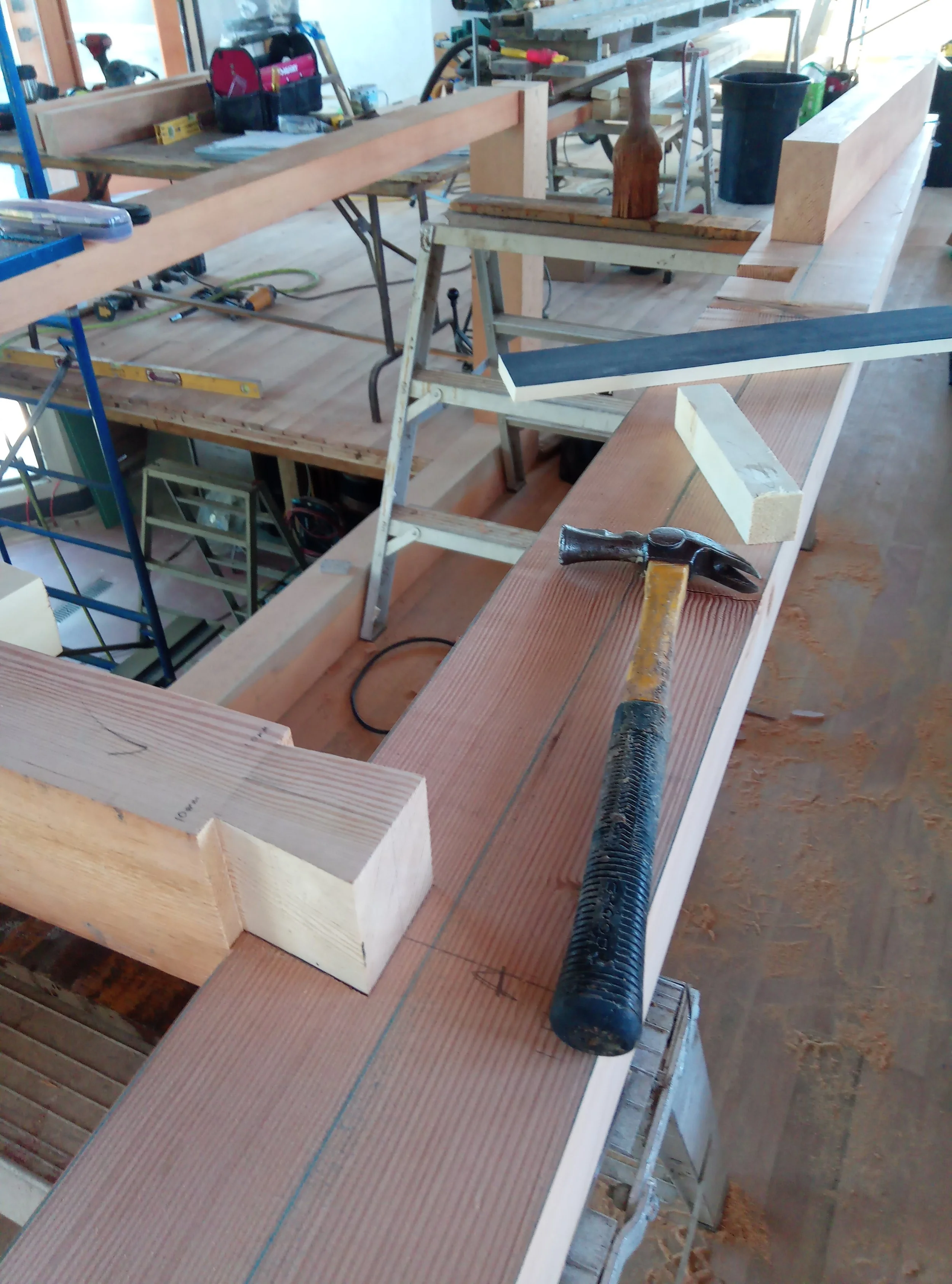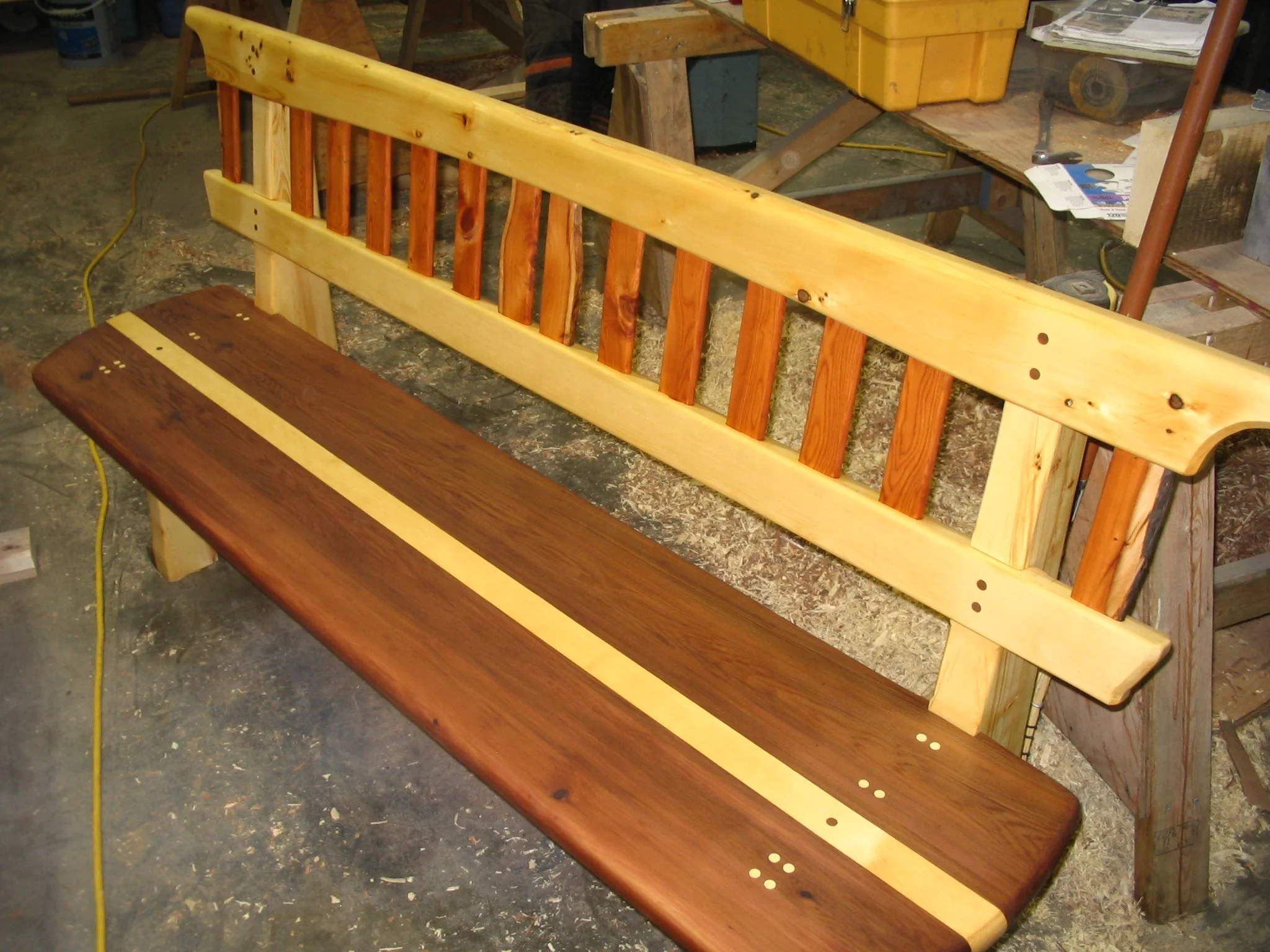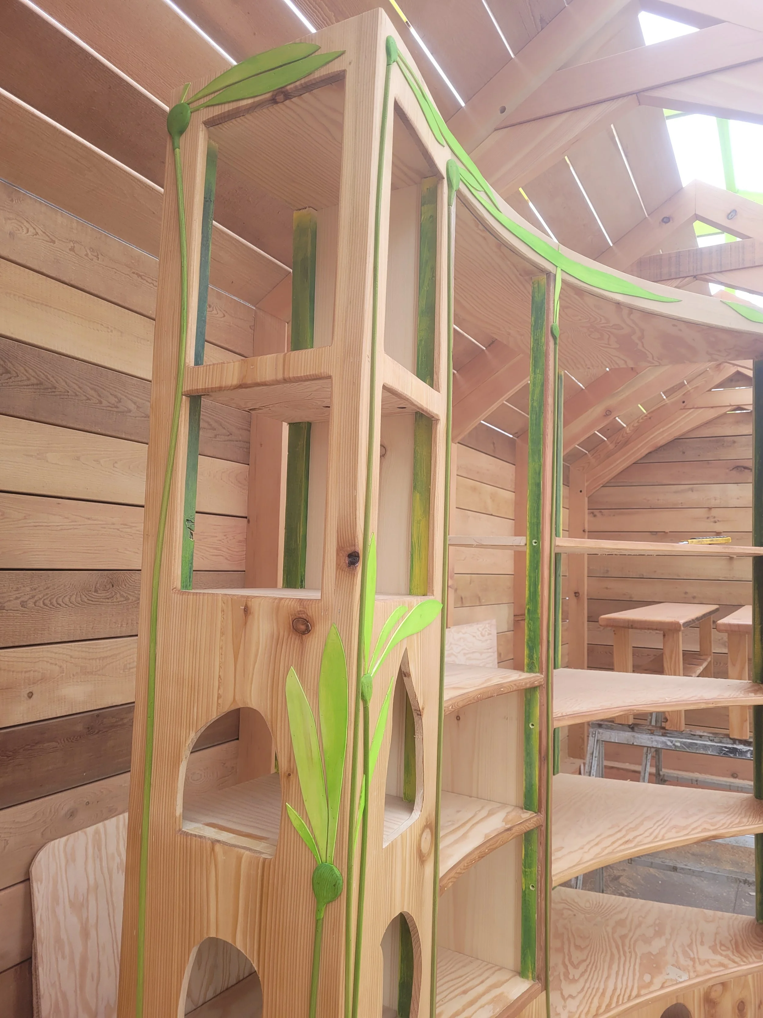 The main building is a work of art itself- designed by Blue Sky Architecture and many-a-carpenter have contributed to the interior finishing over the years. We had a very cool art installation of a yellow cedar fish on the front of the building, a storage shed, kids library, benches, etc…which are perhaps some of the most fun kind of building a carpenter could hope for.