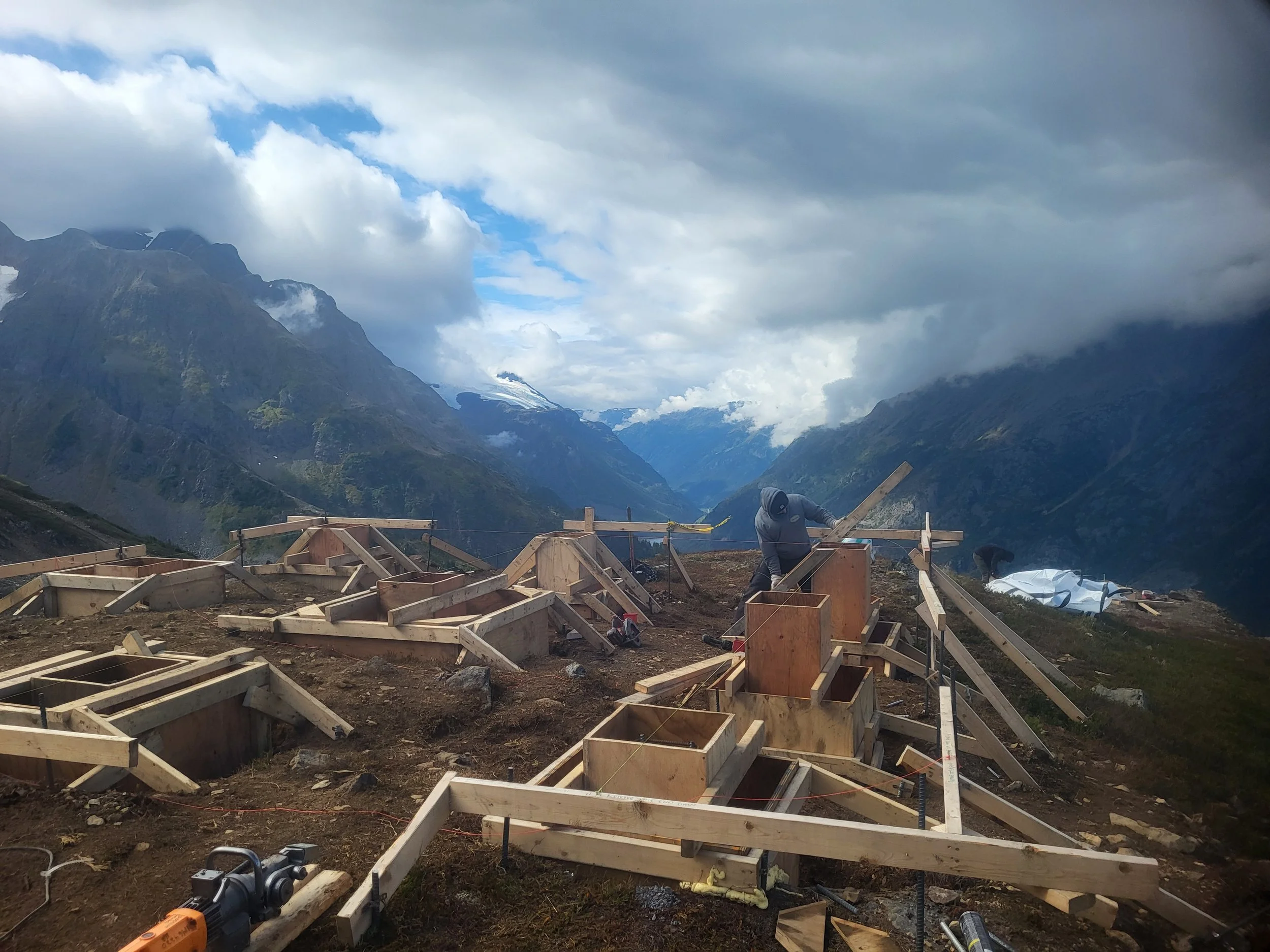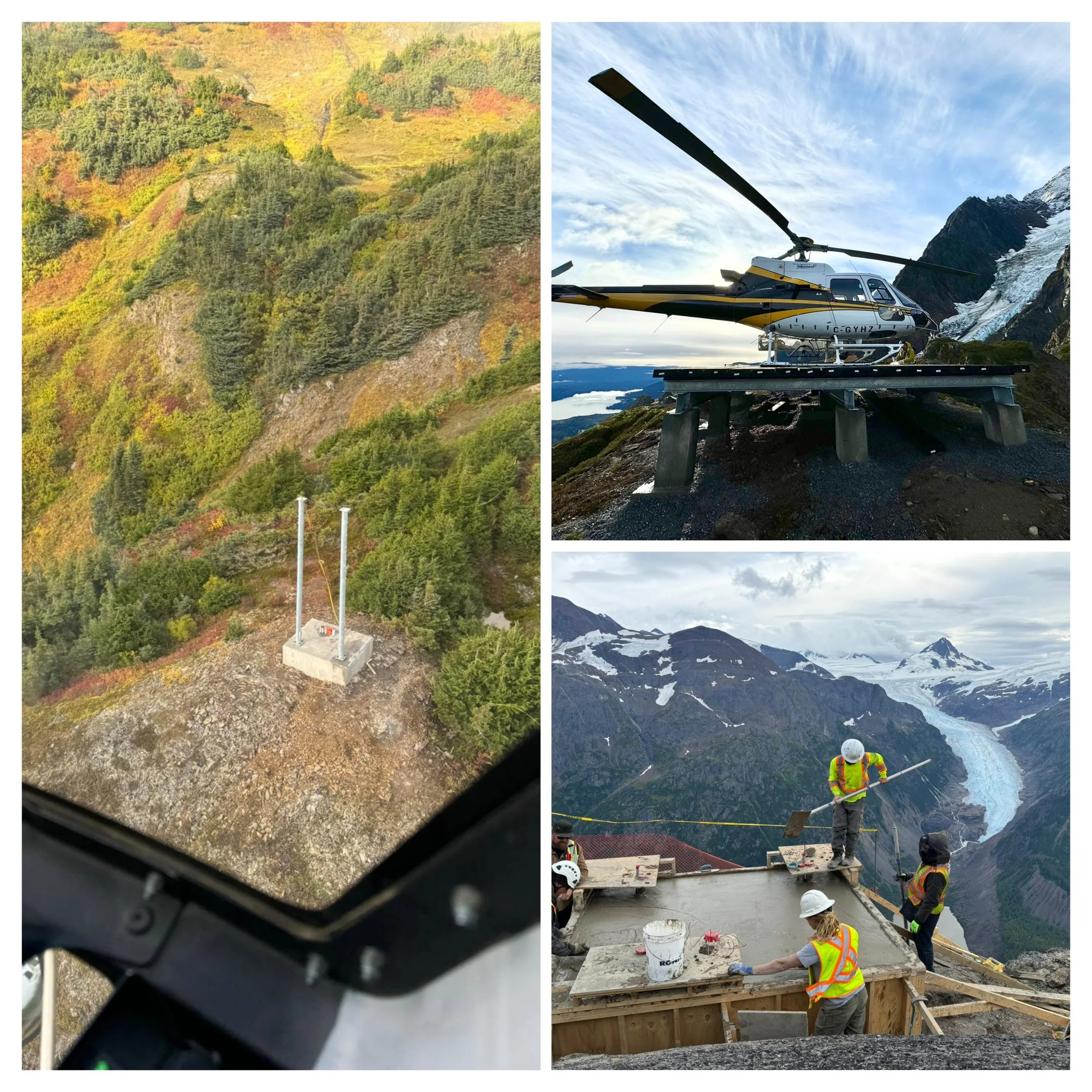 We were contracted to build 3 AADS bases (Automatic Avalanche Detection Systems) , a Helicopter Landing pad and a base for a repeater tower.